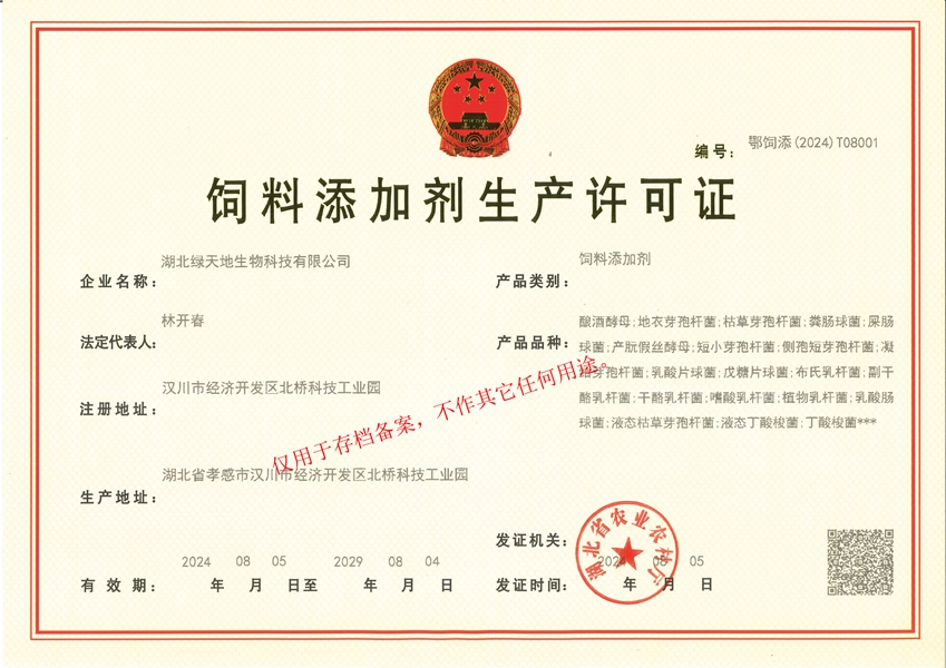 湖北綠天地生物科技有限公司 (簡稱綠天地公司)投資7000萬元,擁有25000平方米的廠房和國內(nèi)先進(jìn)的設(shè)備360臺套,建有微生物發(fā)酵、發(fā)酵冷凍干燥、低溫造粒等8個(gè)車間,發(fā)酵罐總?cè)萘?50立方米,專業(yè)的飼用級益生菌發(fā)酵生產(chǎn)基地。 公司已通過IS09001:2015質(zhì)量管理體系認(rèn)證。 綠天地公司得到了華中農(nóng)業(yè)大學(xué)、中國農(nóng)...